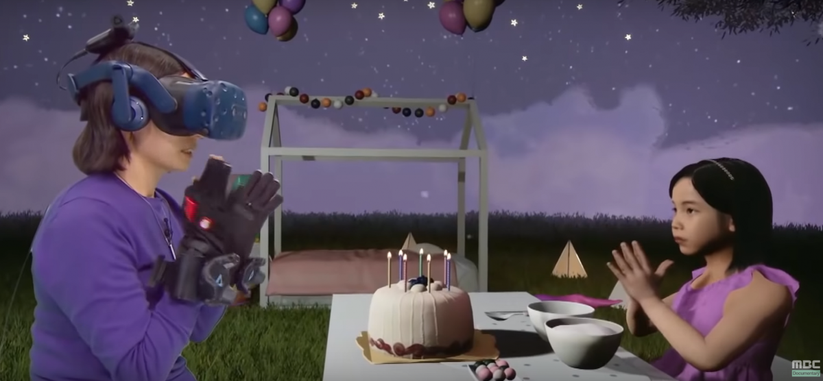 Женщина из Южной Кореи смогла увидеть свою дочку спустя три года после ее смерти с помощью VR. Разработчики создали цифровой образ умершей девочки, способный разговаривать, держаться за руки и даже устраивать собственный день рождения.