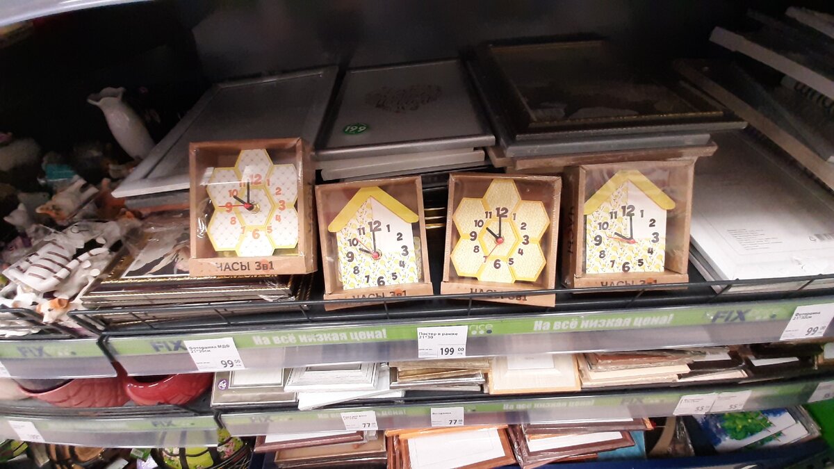 Есть два вида таких часов - в виде сот и домиков. Цена возможно 149 руб. Товар только привезли и ценников еще не было.