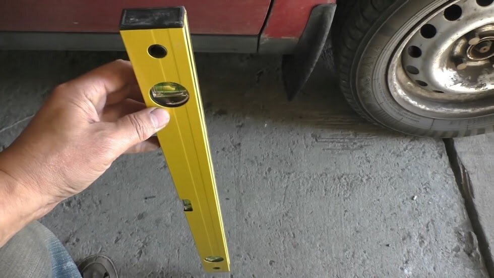 У каждого найдется под рукой все необходимое, чтобы сделать развал. Для этого нам понадобится уровень, можно взять любой, важно лишь чтобы была шкала с пузырьком, показывающая, когда уровень стоит ровно.