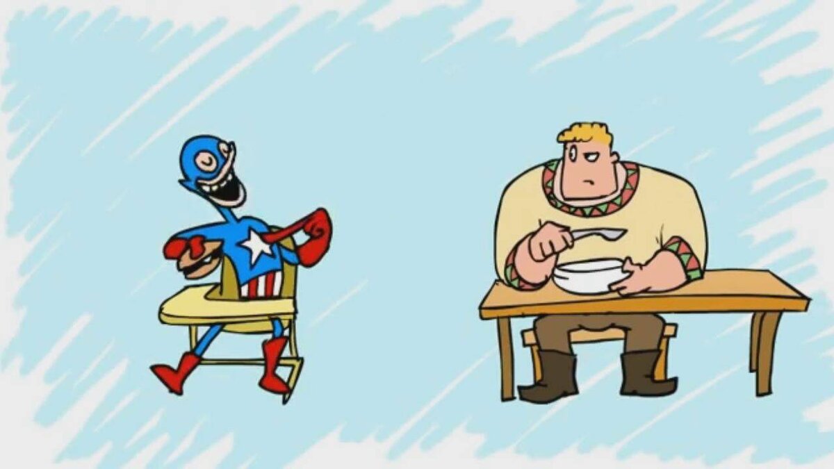 Сидит в кафе русский и полдничает. У него на столе лежит бутерброд с вареньем и мюсли. К нему подходит американец и, жуя жвачку, спрашивает его: – А вот вы, русские хлеб целиком едите? Русский отвечает: – Конечно! А что? Американец, надувая из жвачки пузырь говорит: – А мы – нет! Мы, американцы, едим только мякиш, а корки собираем в контейнеры, перерабатываем их, делаем из них мюсли и продаём в Россию! Русский молчит. Американец, снова надувая пузырь из жвачки, спрашивает: – А вы, русские, едите бутерброды с вареньем? Русский отвечает: Конечно едим! – А мы – нет! Мы в Америке едим только свежие фрукты. Семечки, кожуру и всякие, там огрызки мы собираем в контейнеры, перерабатываем, делаем из них варенье и продаём в Россию! И довольный опять надувает пузырь. Русского это, наконец, изрядно оскорбило и он, в свою очередь спрашивает: – А что вы с презервативами после употребления делаете? Американец: – Выбрасываем, естественно. Русский: – А мы – нет! Мы, русские, собираем их в контейнеры,
