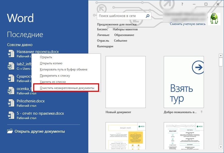 Когда Вы открываете Microsoft Word, в левой части экрана отображается список недавно открытых документов. Вы можете очистить документы из этого списка или, если Вы вообще не хотите видеть недавние документы, полностью отключить список. Список последних документов также отображается, когда Вы выбираете опцию «Открыть» в Word и на панели задач. Очистка списка очищает эти документы из двух мест в Word, но не в списке на панели задач. Вам придется очистить список на панели задач отдельно. Отключение просмотра последних документов предотвращает их появление в любом из этих мест. Вот как это сделать. Очистить список последних документов Очистка списка последних документов проста. Независимо от того, находитесь ли Вы на главной странице Word или на странице «Открыть» при открытии документа, щелкните правой кнопкой мыши на любом документе из недавнего списка и выберите «Очистить незакрепленные документы». В появившемся окне предупреждения нажмите кнопку «Да». Это очистит все документы из списк
