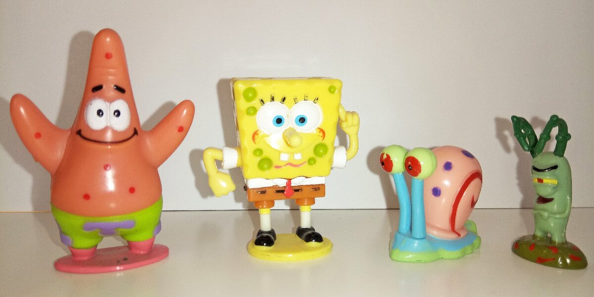 Эти персонажи особенно ценились моим маленьким сыном, поэтому приходилось покупать и покупать, но, в итоге, попались только 4 жителя Бикини Боттом (на фото вверху), хотя можно было собрать семерых (на фото внизу).
