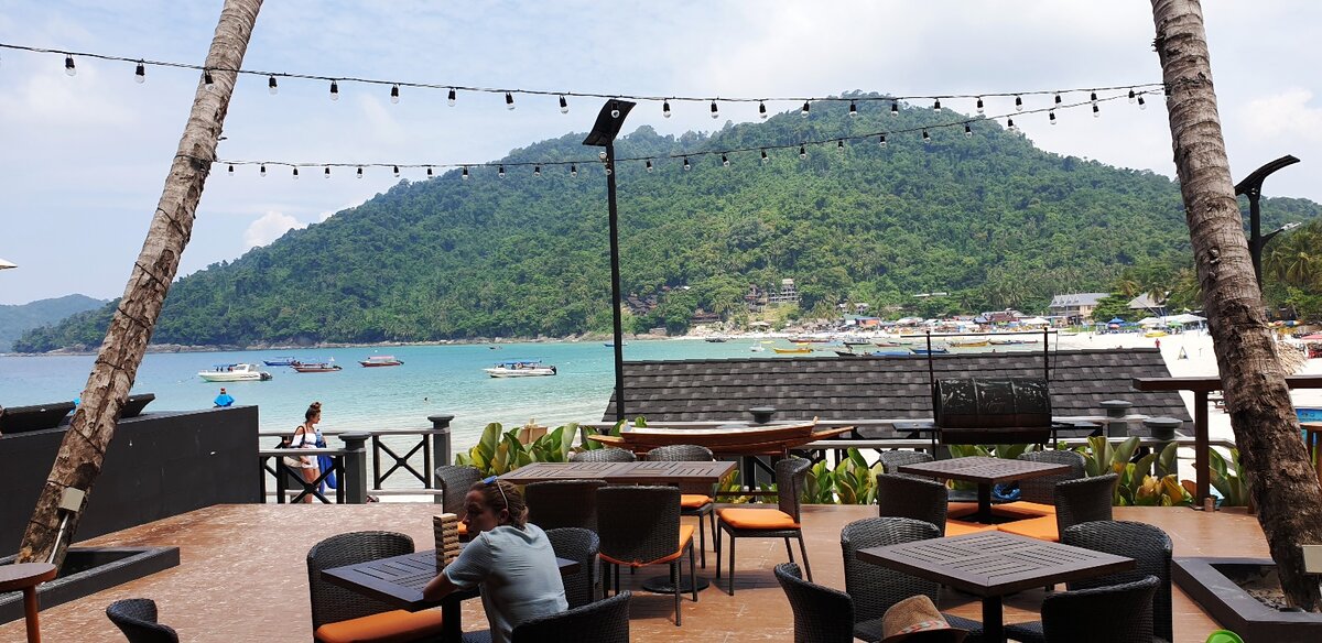 Позавтракав с видом, мы пошли по пляжу искать нашего будущего драйвера, который на своей морской "яхте" будет нас катать по диким местам Перхентиан.