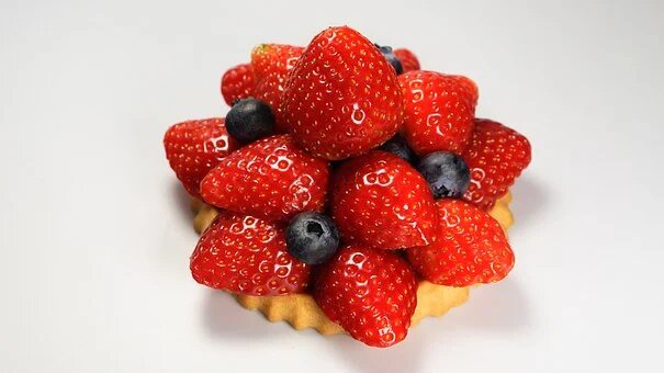 Клубнику вымойте и порежьте на небольшие кусочки.