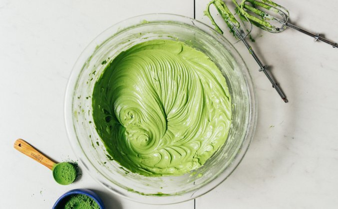 113 г размягченного веганского масла (если не устраевает веганское - замените на сливочное масло)1/2 чайной ложки ванильного экстракта168-224 г просеянной сахарной пудры2-4 ч.л. матча чай15-30 мл растительного молока(например, несладкое миндальное молоко // по вкусу)