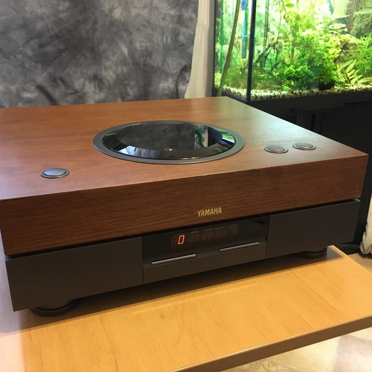Yamaha GT-CD2 - топовый CD проигрыватель начала 90-х годов, имеющий на борту очень качественные однобитные ЦАП Yamaha (YAC507-N), лазерную головку Toshiba (TAOHS-KP2), бесколлекторный двигатель привода диска и еще много всего интересного. Дизайн шикарный, с моей точки зрения. Загрузка CD верхняя, крышка моторизованная. При использовании необходимо каждый раз ставить на диск, а потом и снимать с него, тяжеленький прижим (clamp), что для меня было немного непривычно и поэтому, поначалу, часто забывал поставить его перед запуском. Кнопок у аппарата немного, но есть пульт ДУ, с которого доступны все функции.