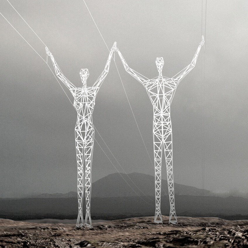 Так появилась концепция «Земля гигантов», которую разработало одно американское архитектурное бюро. В их проекте опоры высотой 30 метров состоят из модулей. Собранные воедино, они представляют собой гигантские человеческие фигуры, которые держат в руках провода. По мнению авторов проекта, так опоры гармоничнее вписываются в окружающее пространство.