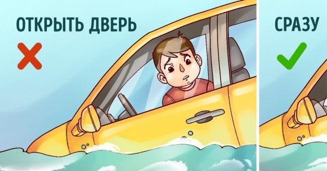 Спасатели предупреждают: на эти 2 шага у вас есть примерно минута, пока автомобиль не затонул. Не тратьте время, пытаясь открыть дверь. Она все равно не поддастся, поскольку вода давит на нее снаружи. Последовательность: «отстегнуть ремень, открыть окно и выбираться» — это ваш реальный шанс на спасение. Проще всего открыть окно с ручным подъемником. Но и с электронным шансы высоки. Спасатели отмечают, что по результатам тестов электроника будет работать еще как минимум 10 минут с момента погружения в воду. Ни в коем случае не старайтесь разбить лобовое стекло. Не получится — для повышения безопасности при столкновениях его делают из триплекса. На интернет-сайтах можно найти недорогой инструмент для легкого разбивания автомобильных стекол. Еще один вариант — нужно держать в машине под рукой какой-то тяжелый предмет с заостренным наконечником. Подойдет молоток, гаечный ключ, тяжелая отвертка, а если их нет — штырь съемного подголовника, каблук-шпилька или собственный локоть. Целиться ну