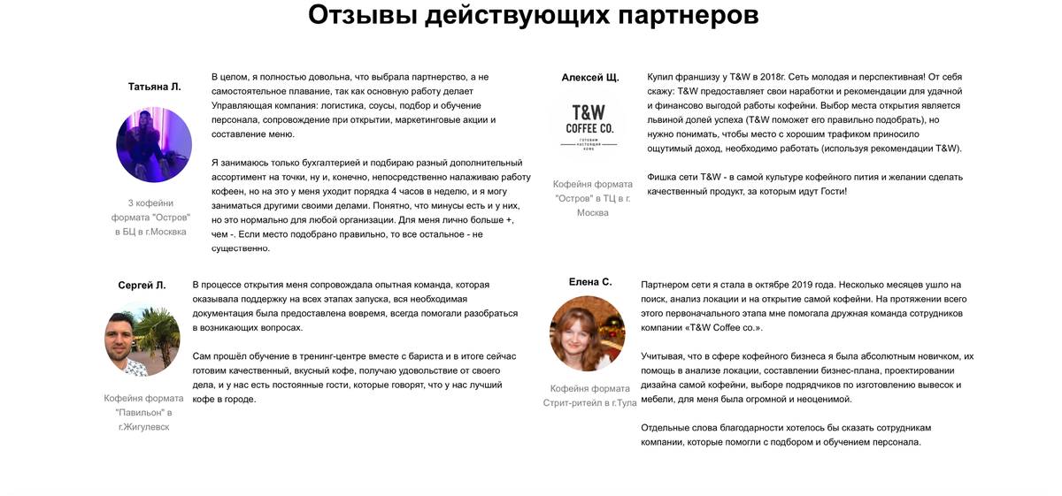 Наконец-то у нас появилось немного времени, чтобы попросить партнеров оставить отзыв о франшизе T&W. Пока что обработали 4 отзыва и я с радостью делюсь ими с вами.