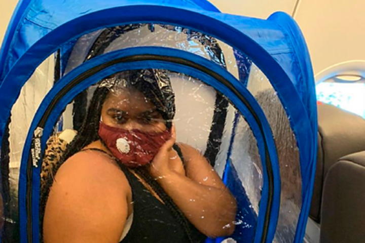 Пассажирка самолета выбрала неожиданный набор средств индивидуальной защиты: маску и палатку.