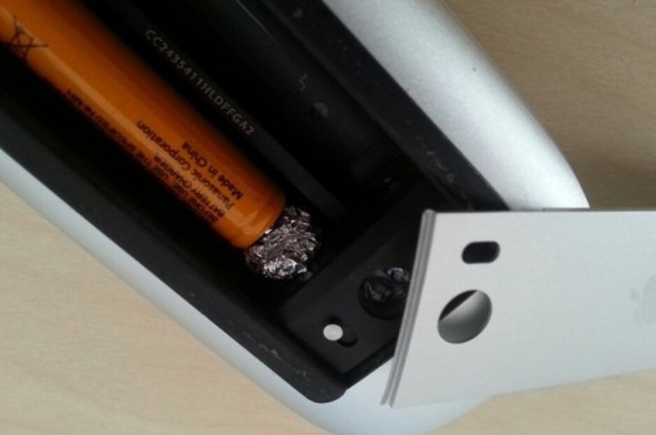 Бывают такие моменты, когда необходимы пальчиковые батарейки, а дома в наличии их нет. Вы все, наверное, осведомлены о том, что алюминиевая фольга является проводником электрического тока. Так вот вместо пальчиковых батареек можно взять мизинчиковые и добавить в недостающую область фольгу, свёрнутую в комок.
