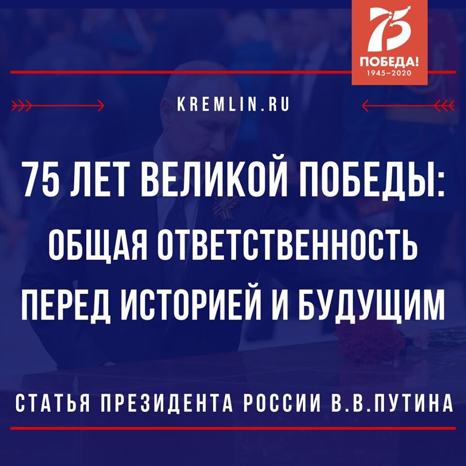 Я хотел бы сейчас сказать о другом. Недавно нашим президентом была опубликована статья, приуроченная к годовщине Великой Победы над фашистской Германией, которая так и называется: "75 лет Великой Победы: общая ответственность перед историей и будущим." Статья, на мой взгляд, интересна тем, что там впервые раскрываются некоторые ранее засекреченные архивные документы, позволяющие по-новому взглянуть на отдельные события тех лет. Это тем более важно на фоне последних заявлений некоторых западных политиков, касающихся фактов начала и окончания той кровавой войны, а также о роли каждой из стран-участниц.