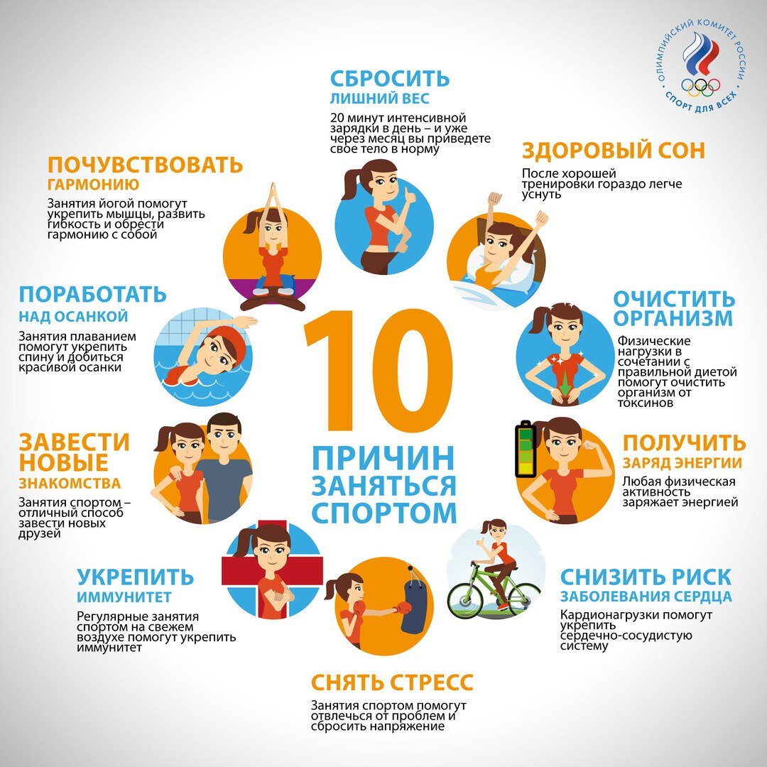 Существует 10 причин заниматься спортом: