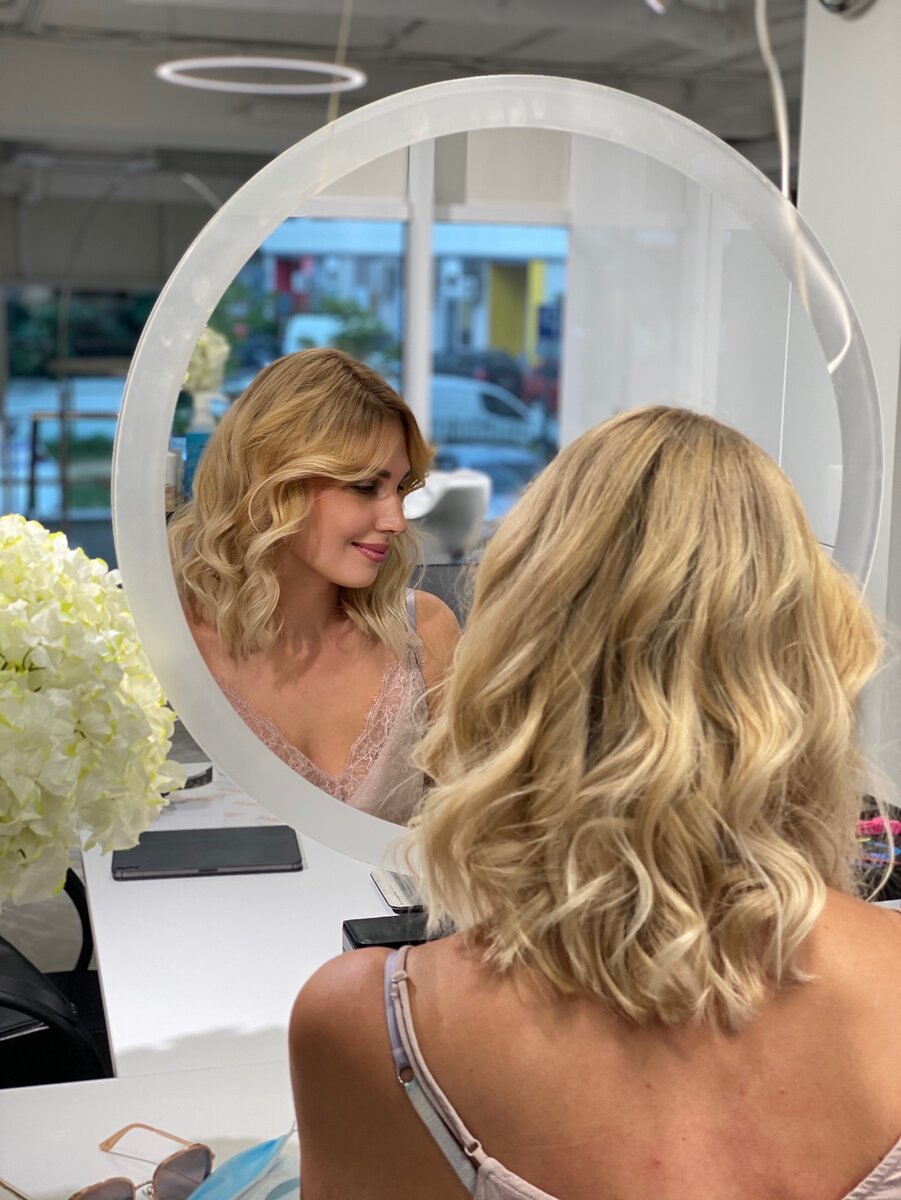 Хорошая новость для таких «бояк» - это сделать «Ауру сияния» у лица. Техника, которая деликатно затрагивает контурирующие волосы по периметру и даёт возможность примерить блонд на себя.
