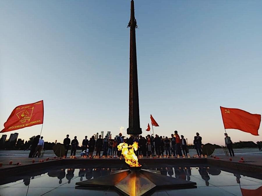 Коммунисты и комсомольцы Москвы провели памятную акцию на Поклонной горе, вспоминая трагическую дату начала Великой Отечественной войны.