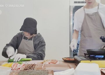 Участники группы BTS Чонгук (Jungkook) и Чимин (Jimin) провели Vlive. В рамках этого выпуска они демонстрировали поклонникам свои кулинарные способности и готовили корейское блюдо.