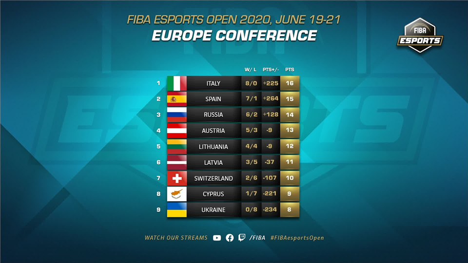 На днях завершился первый киберспортивный турнир от Международной федерации баскетбола. Несколько национальных команд, среди которых были сборные России и Украины, сражались за звание лучших кибербаскетболистов в NBA 2K20. В результате россияне смогли занять третью строчку в общем зачете европейской конференции, пропустив вперед только сборные Италии и Испании. Как видно по представленному выше рейтингу, сборной России немного не хватило для того, чтобы подняться выше в командном зачете. Ну, то есть как? Не хватило обыграть команды, которые непосредственно выше и расположились – Италию и Испанию. Эти сборные, судя по соотношению побед и поражений, а также по разнице набранных за все игры очков, были вне конкуренции. Ивент проходил в онлайн-формате, но при этом был организован студийный эфир из студии в городе Рига. Были комментаторы, трансляция на нескольких стримах одновременно, были нарезки хайлайтов и даже созвоны с игроками для интервью. Все по последнему писку карантинно-киберсп