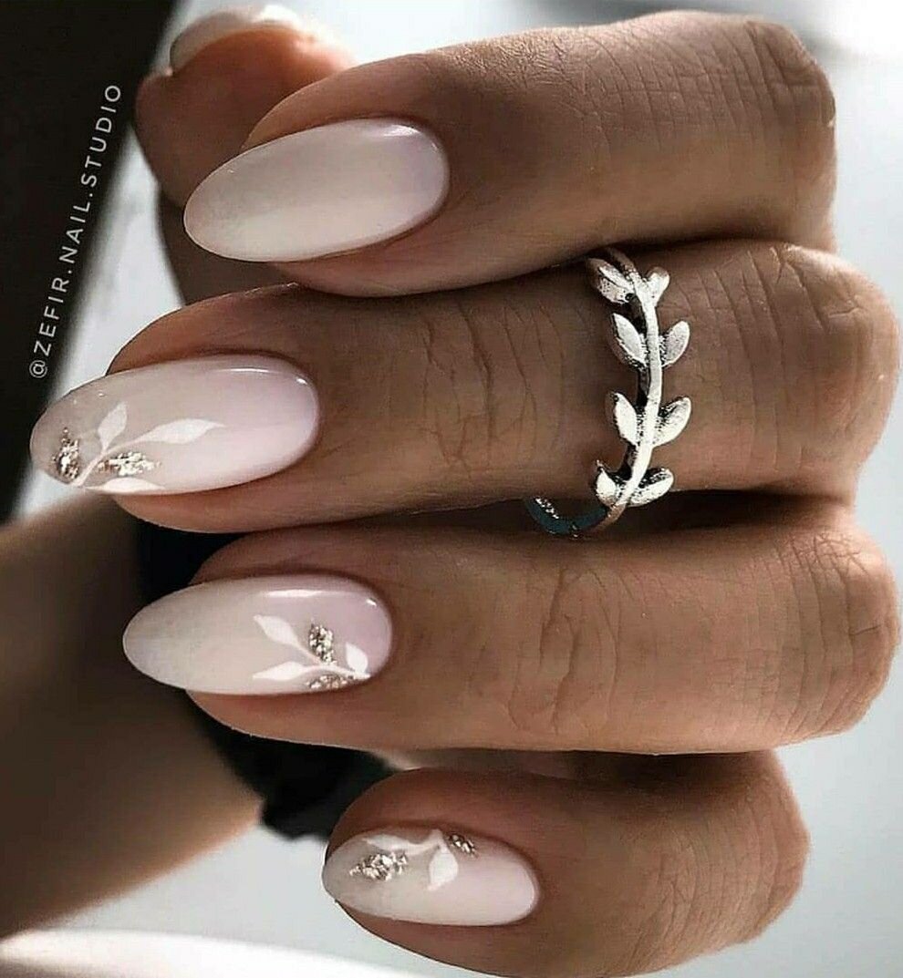 Эффектно будет смотреться светлый маникюр омбре в других сочетаниях цветов, дополненных небольшими рисунками веточек или цветков, что идеально впишется в повседневные аутфит.