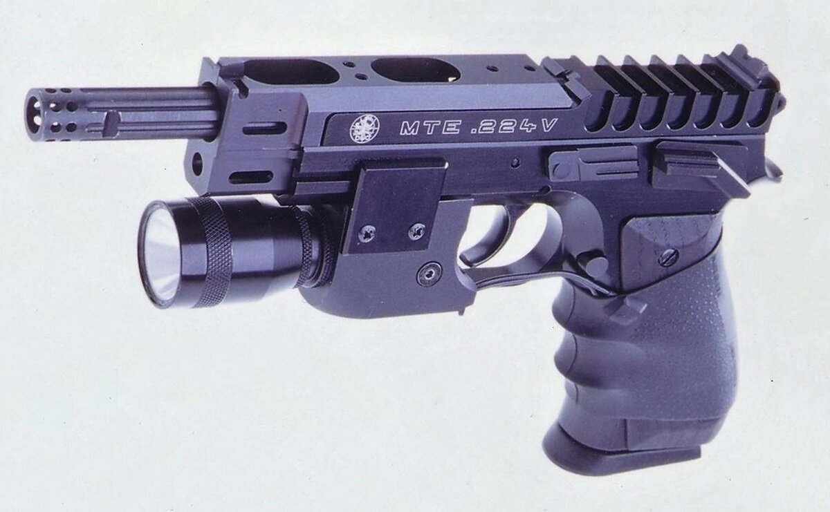 О нём мало что известно. Произведен швейцарскими оружейниками под специально созданный патрон 5.56×23.5мм конструкции Петра Воборила, представленный увеличенной гильзой от патрона 7.62х25мм ТТ с узким горлышком для удержания пули патрона 5.56х45мм НАТО. Получился маленький мощный патрон для класса оружия самообороны PDW.