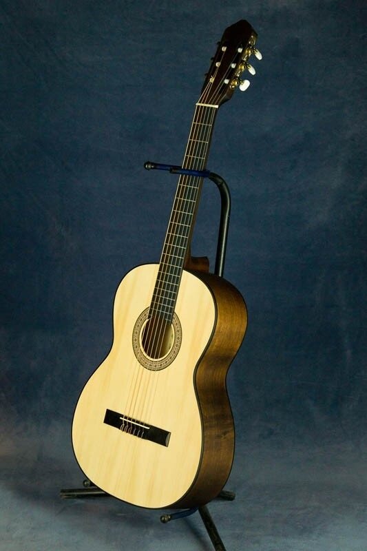 Классическая гитара Strunal (Cremona) 4670 чешского производства. Верхняя дека из ламината ели, нижняя - из ламината клена. Мензура 650 мм. Колки "жесткие". Покрытие матовое.