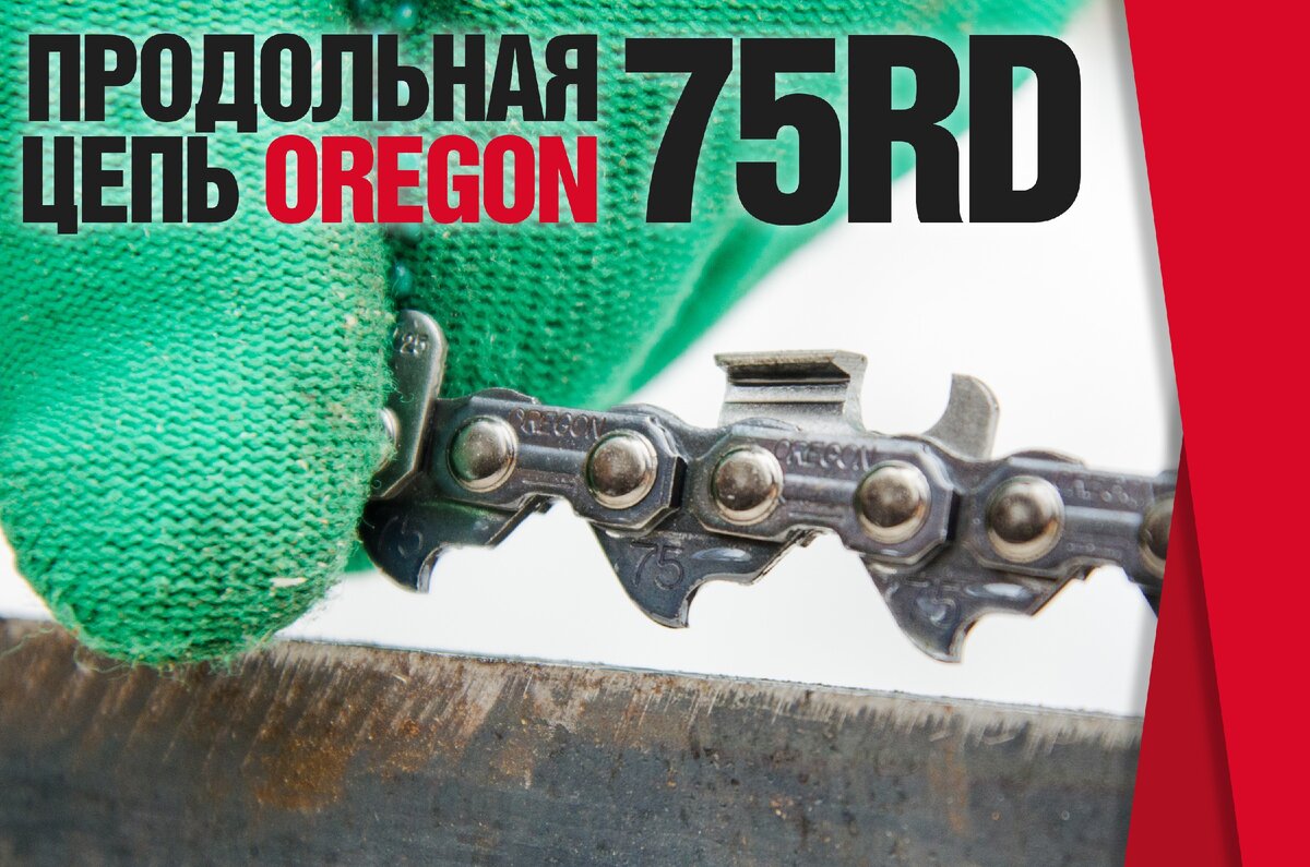 Серия профессиональных полнопрофильных пильных цепей для продольного пиления с шагом 3/8 дюйма: 72RD – с толщиной хвостовика (паз шины) 1,3 мм; 73RD – с толщиной хвостовика (паз шины) 1,5 мм; 75RD – с толщиной хвостовика (паз шины) 1,6 мм. Данные цепи используются на бензиновых агрегатах с объемом двигателя от 55 куб. см. и цепных электрических/бензиновых пилорамах. Отличительная особенность данных цепей от цепей для поперечного пиления, это угол заточки режущего зуба 10 градусов (поперечный тип цепей, это угол от 25 до 35 градусов) и форма резца – получиппер, прямая верхняя плоскость и закругленная боковая грань. Кроме того, верхняя плоскость имеет профиль прямоугольника, что позволяет затачивать ее большее количество раз. Благодаря такой форме резца, поверхность спила получается гладкой, а процесс пиления проходит мягко и равномерно. Резец имеет дополнительное антикоррозионное хромирование. Транспортировку масла по направляющей шине обеспечивают масленые емкости в соединительных з
