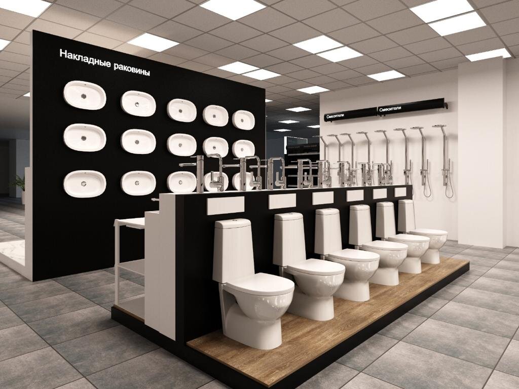 Из входной зоны мы проходим в зал керамической плитки и сантехники🛁.