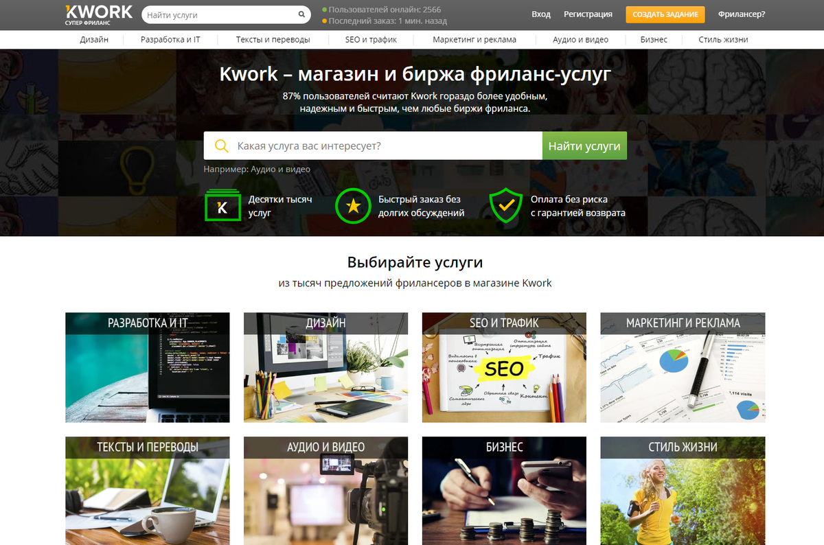 Сделаю эту статью максимально понятной и не буду лить много воды, так как знаю, что это не нравится читателям. Перейдем к теме, ради которой мы здесь собрались. И так, в интернете очень много возможности зарабатывать. Но, всех этих сайтов столько развилось, что сразу и не поймешь какой нормальный, а где обман. Сейчас я расскажу про 3 сайта, на которых не заработать просто не возможно. Kwork.ru - Это не просто биржа фриланса, а магазин фриланс-услуг. Услуга имеет фиксированную стоимость 500 рублей, из которых 100 рублей будет комиссия сайту. На этом сайте имеется большой ассортимент заданий: от написания комментариев в соц.сетях, до создания сайтов, выбор огромный и каждый сможет найти задание по своим возможностям. Создавайте свои кворки и вам будут писать и давать какое-то задание по направлению которое вы укажете. Лучшие исполнители зарабатывают на Кворке около 200 000 рублей за месяц. Топ-5 специализаций, в которых фрилансеры заработали больше всего, смотрится так: