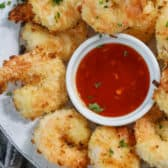 ВРЕМЯ ПОДГОТОВКИ - 15 минут ВРЕМЯ ПРИГОТОВЛЕНИЯ - 15 минут ОБЩЕЕ ВРЕМЯ - 30 минут ПОРЦИИ - 4 Эти Кокосовые Креветки покрыты кокосовым орехом, затем запекаются в духовке до золотисто-коричневого цвета! Ингредиенты инструкции ИНФОРМАЦИЯ О ПИТАНИИ Калории: 362,17, Углеводы: 36,61 г , белок: 28,64 г , жир: 10,39 г Приятного аппетита! Ставьте лайк и подписывайтесь на канал!