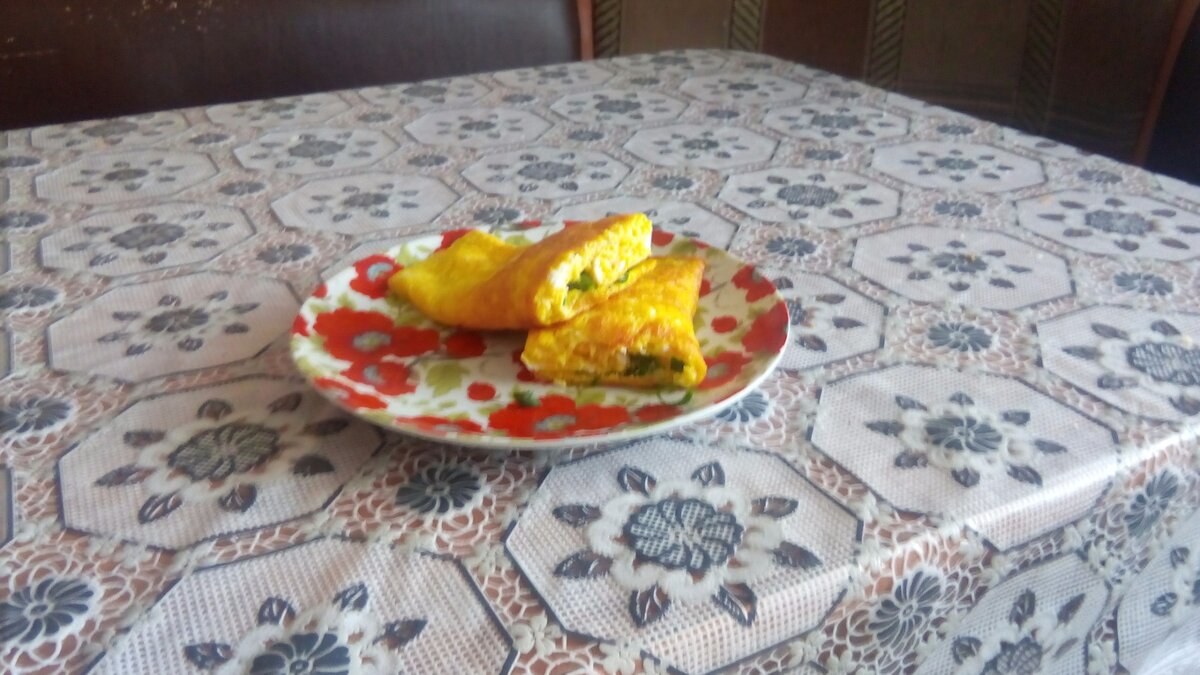 Всем привет! Как то не давно я писала рецепт яичного блина. Надеюсь было вам полезно и вкусно. Теперь я решила про импровизировать и на этот раз сделала его чуть не обычным. Для его приготовления я использовала как правило 3 яйца соль , перец по вкусу сыр твердый 80 гр зелень масло сливочное для смазки сковороды Для начала конечно приготовила смесь все ингредиенты кроме зелени смешала и полученную массу выложила на сковороду. Как только наш блин начинает доходить я его начинаю сворачивать и досыпаю зеленушку Зелень изначально не добавляю так как хочется чтобы завтрак получился по ароматнее. Буквально минуты две держу в свернутом виде на сковороде затем снимаю. Получается очень вкусно.😋 Это очень быстро вкусно и легко. Спасибо что дочитали статью до конца. Если она была полезной ставь палец вверх. Буду очень благодарна и рада. Ждите новых рецептов. Пока!!!😘