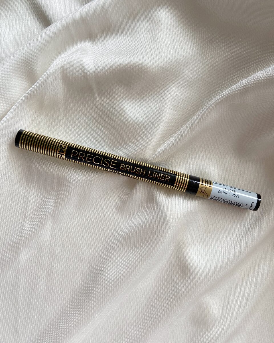 Помню как раньше я часто мучилась с подводками-фломастерами, которых хватало на 1 стрелку, а на вторую приходилось чуть ли не сцеживать этот фетровый наконечник. С тех пор я стала пользоваться гелевой подводкой, но вот проблема, нужно постоянно следить за тем, чтоб кисть от нее была чистой, мыть и сушить ее в спешке накладно. Ну и решила я попробовать подводку-фломастер с кисточкой еще раз. Как-то пару лет назад пробовала такую от Divage, опыт был печальный. Герой поста - подводка-фломастер Precise Brush Liner от Eveline. На мой взгляд для бюджетной подводки упаковка более чем красивая: черная с золотом и ничего лишнего. Кстати, выполнена она из пластика. Я постаралась покрупнее запечатлеть кисть. На фото можно различить волоски. Кисть в меру упругая, держит форму, не пушится, волоски пока не выпадали. Можно нарисовать довольно тонкие линии без проблем, но тут хочу отметить пару моментов: 1) подводка не ультра черная 2) финиш не матовый, а глянцевый Мой опыт и впечатления. Покупая эту
