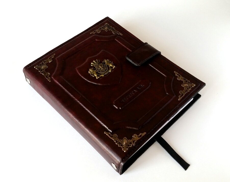 Обложка сделана из натуральной кожи богатого оттенка, приближенного к красному дереву. Обладает высокой износостойкостью за счет качества материала. Гарантированно прослужит долгие годы Вам или человеку, которому сделаете этот оригинальный подарок.