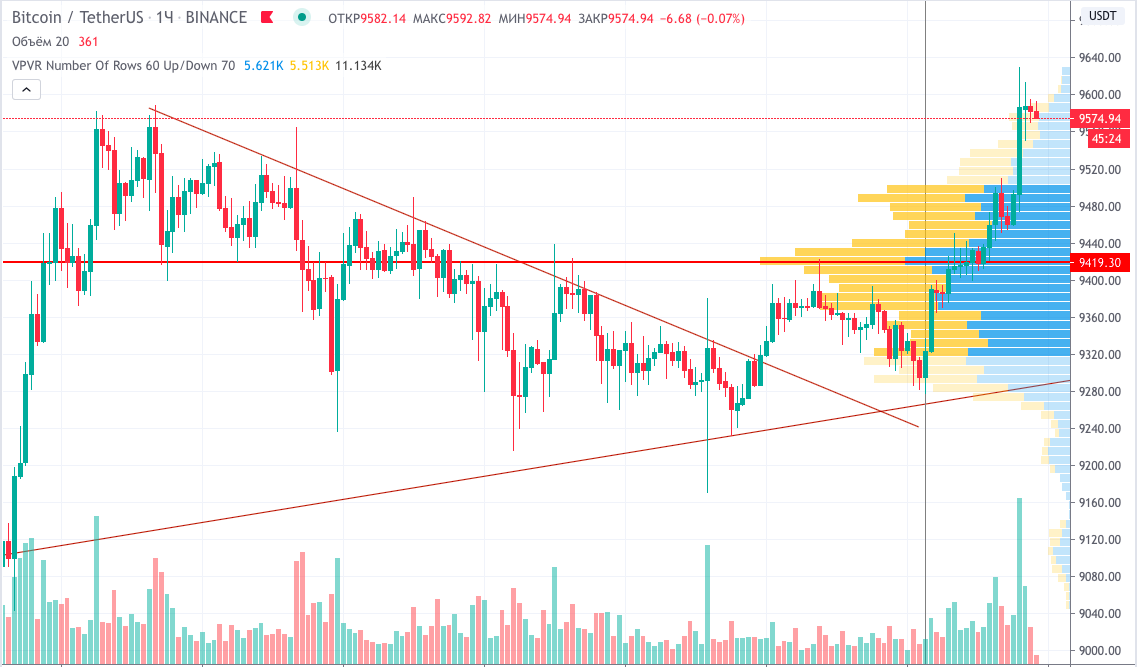 2) график и фигуры сами по себе мало информативны без учета объема проводимых сделок, который указывать на повышенный или пониженный интерес со стороны участников рынка. Те же уровни на графике и работают, поскольку это места скопления объемов продаж/покупок. Идеально анализировать график не только с учетом вертикальных объемов (какой оборот произошел за конкретный временной интервал), но и горизонтальных (какой оборот произошел по определенной цене). Это гораздо четче дает представление о том, куда дальше может пойти цена, а даже если и не пойдет, то до куда может провалиться, что делает такую торговлю относительно просчитываемой по профиту/риску.