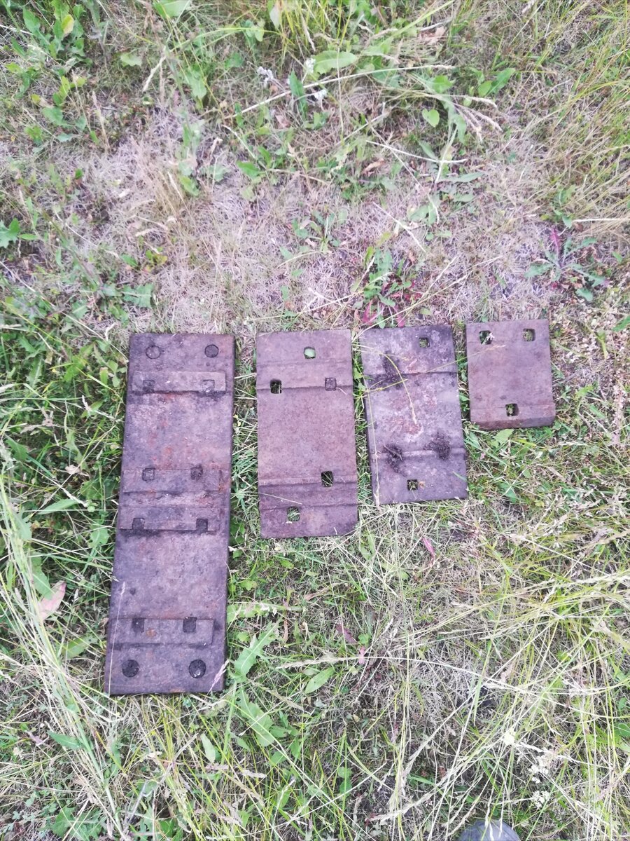 Не долго думая я быстро снарядил свою буханку и отправился на то место. Копал я около 4 часов и выкопал внушительное количество железяк. В основном это были подкладки разных размеров, соединители рельс, костыли, и попалась даже плита толстостенная.