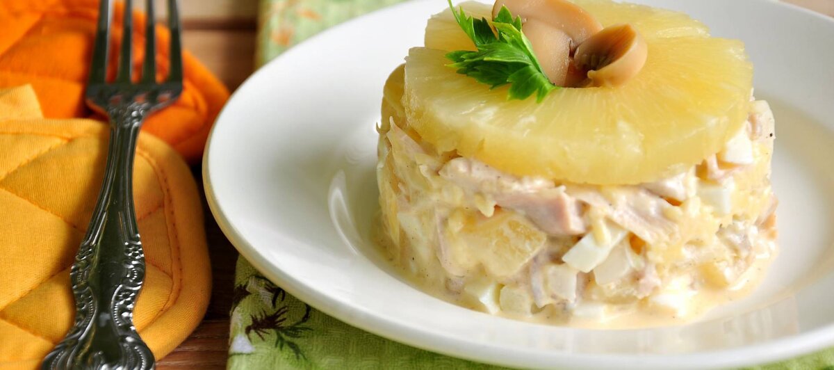 САЛАТ С ВЕТЧИНОЙ И АНАНАСОМ