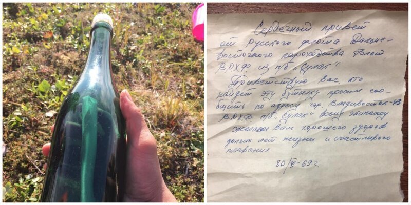 Американец Тайлер Инванофф обнаружил на берегу Аляски в городе Шишмарёв бутылку с посланием. Когда он открыл её, оказалось, что это послание из далёкого СССР. Американец опубликовал находку в Facebook с просьбой перевести.