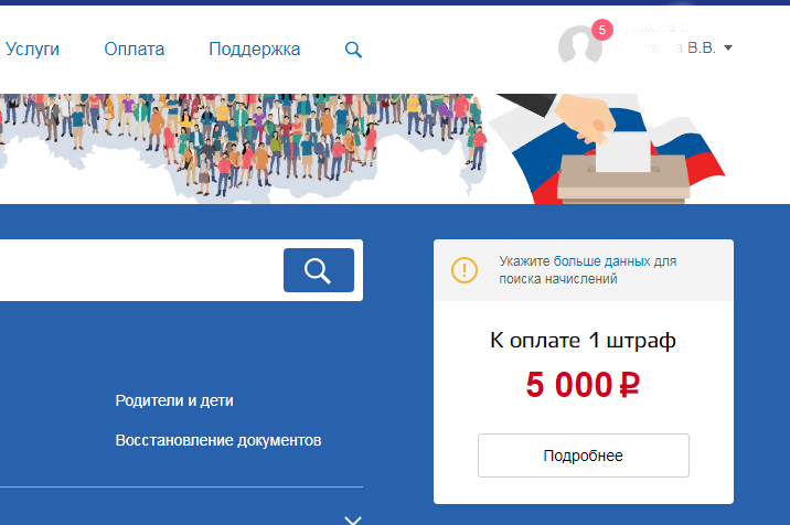 Захожу я значит на Госуслуги, поглядеть, как там дела с моим заявлением на пособие. А тут сюрпризик! Штраф на всего-то 5000 рублей.