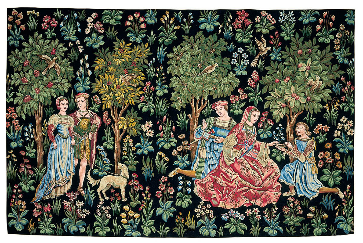 Сегодня мы с вами рассмотрим историю создания мильфлёров и основные их особенности. В переводе с французского языка означает - «тысяча цветов». В буквальном смысле так и есть - это однотонный фон, как правило усыпанный листьями или цветами. Их распространение стартовало в 15-16 веках на территории франко-фламандского региона. Провинция Турень считается их родиной в связи с тем, что эта земля была центром производства шпалер в таком стиле. В связи с событиями Столетней войны, производство шпалер из столицы Франции было перемещено в города по бассейну реки Луары. Существует мнение, что мильфлёры зародились в связи с принятым во Франции обычаем: в день отмечания праздника Тела Христова украшать процессию тканями с прикрепленными к ними живыми цветами. У мильфлёров самые дифференцированные сюжеты: сцены из светской жизни, сюжеты из мифов, аллегории, религиозные мотивы. Изображают на них не только растения и цветы, но и птиц с животными. Традиционный цвет фона - красный, зеленый, темно-си