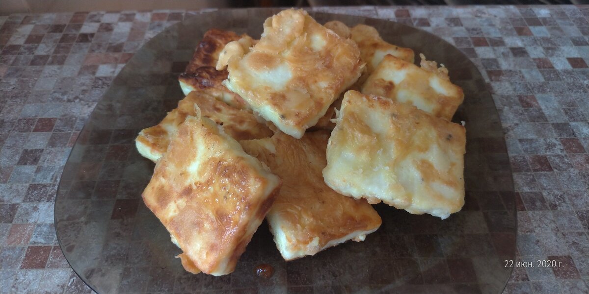 4. Специи по вкусу Порежьте сыр пластинами толщиной около сантиметра. Яйцо взбиваем венчиком, переливаем в блюдце. Солим, перчим по вкусу.Муку выкладываем на тарелку. Далее наливаем в сковородку растительное масло и ставим её на огонь. Как сковородка разогреется, берём сыр, макаем его в яичную смесь, в муку и выкладываем на сковородку. За сыром нужно присматривать. Жарится он быстро. Буквально пару минут и его следует перевернуть. Пережаривать сыр не рекомендую. Он тогда приобретает горьковатый горелый вкус. Кушать подано!!!!