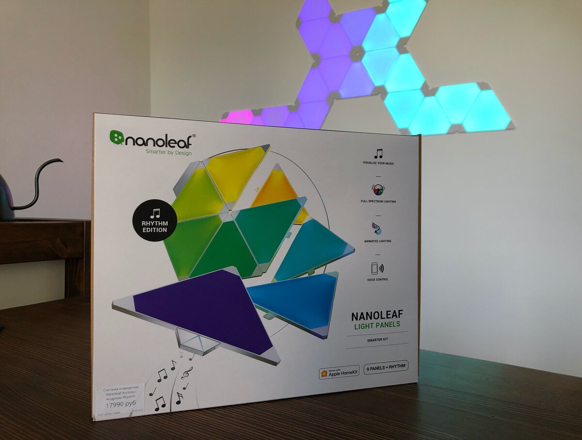 Время идёт, технологии приходят в наш дом. Они плавно меняют наш интерьер от "Обычного" к "Технологичному" и ломают устоявшиеся традиции с которыми мы жили последнее время. Одна из самых старых традиций это вешать дома картины. Красиво? Да, но это уже обычно и не интересно. Так что сейчас можно повесить на стену и вообще что такого интересного можно купить что-бы удивить себя и гостей? Это NanoLeof Aurora : Её в народе называю картиной 21 века, ведь эту картину вы создаёте сами! Она состоит из элементов в форме треугольника, и крепиться на двухсторонний скотч который не оставляет следов на стене. В стартовом комплекте 9 элементов (треугольников) и блок питания, что для не большой квартиры например уже достаточно. Если этого показалось мало то всегда можно докупить комплект из одной/трех/девяти штук. Очень умная лампа! Для установки особых знаний не надо, нужно только место куда повесить. Все элементы NanoLeof Aurora питается от одного провода 220v. Лично я провод убрал в плинт