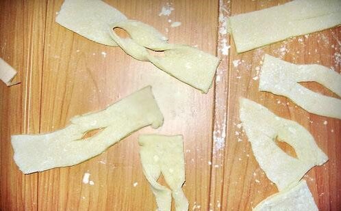 Из серии " готовила мама , вкус детства"))) Приготовить легко и быстро. Понадобится: 3 яйца 600 г муки соль чайная ложка соды столовая ложка сахара примерно 250г воды сахарная пудра растительное масло Приготовление: Все смешать , кроме масла и пудры , вымесить тесто. Тонко раскатать , нарезать . Нарезать можно как угодно, на вкус не влияет))) Обжарить в раскаленном масле , дать немного остыть. Можно есть Приятного аппетита , спасибо за просмотр