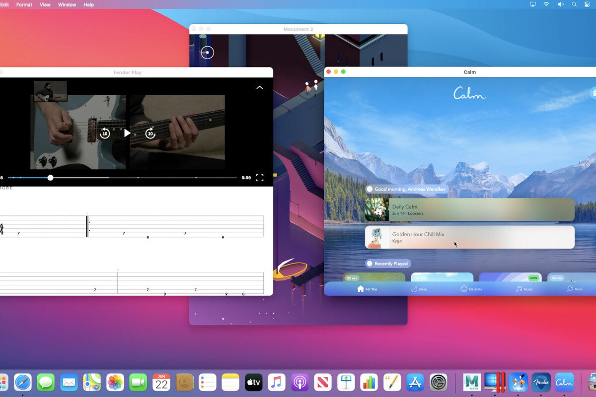 Apple объявила, что ее новые компьютеры Mac, оснащенные недавно анонсированными чипами Apple, смогут запускать приложения для iPhone и iPad, благодаря общей архитектуре. Приложения, показанные во время выступления, включают Monument Valley 2 , Calm и приложение Fender Play. Новые приложения будут установлены прямо из Mac App Store, а несколько приложений для iOS смогут работать параллельно с приложениями MacOS. Apple утверждает, что новая функция будет доступна при запуске вместе с новыми компьютерами Mac с чипами Apple, которые должны появиться уже в конце года. Совместимые приложения iOS будут отображаться в Mac App Store по умолчанию при запуске первых компьютеров Mac с Apple Silicon (хотя не совсем понятно, что означает «совместимый»), и если вы уже купили их на iOS, вам не нужно сделай это снова. Однако разработчики могут не предлагать свои приложения для iOS в Mac App Store, если они того пожелают. Изначально Apple запустила приложения Catalyst с прошлогодним анонсом macOS 10.15