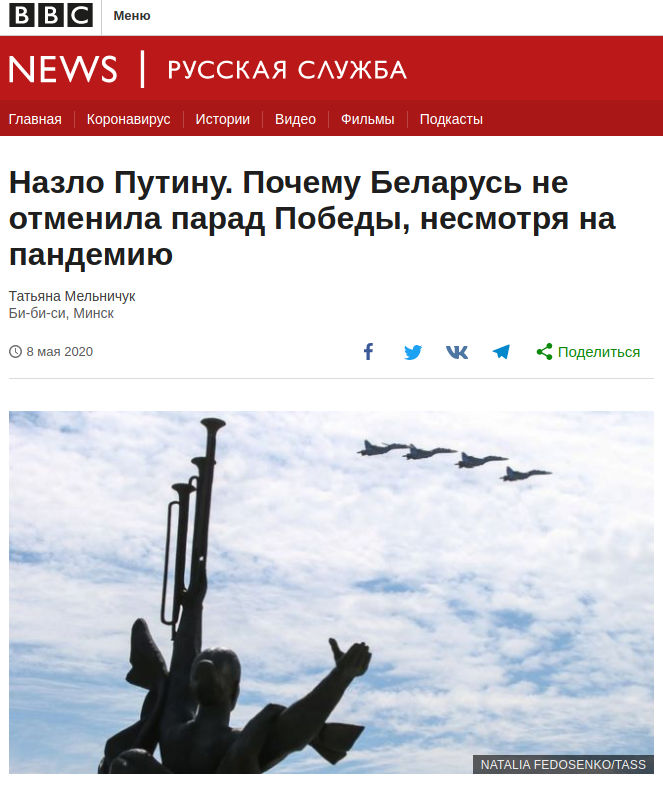 И как-то всё переменилось. То ли ветер подул в другую сторону, то ли звёзды не сошлись, но вся наша либеральная элита, восхищавшаяся ранее Лукашенко, внезапно возопила: Путин обезумел! Ну как можно проводить парад? Кому он нужен? Да и коронавирус ведь!
