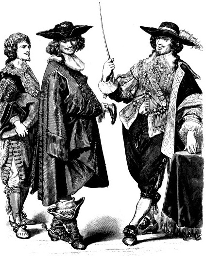 Костюм французских аристократов, середина 17 века Костюмы французской знати, вторая четверть 17 века Герцогиня Орлеанская и дворцовый стражник Луиза Рене де Керуаль, Мария Анна Баварская и дворцовый стражник Офицер и мушкетер Французские дамы в трауре Французские кавалеристы Французские придворные костюмы, конец 17-го века