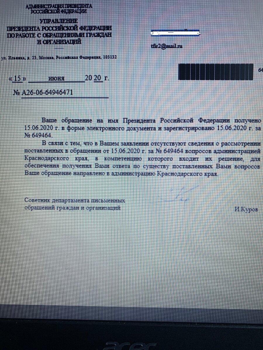 Удивительная жизнь в нашей жизнь в России матушке. Мною была написана и отправлена жалоба в Электронную приёмную Президента Российской Федерации. Буду публиковать всю переписку с властями, в такой ситуации как мы сейчас находится большая половина страны. И так ответ на мою жалобу. Текст