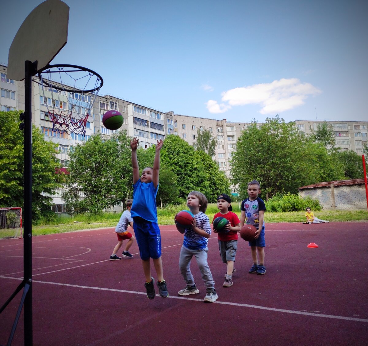 Лёша пробует баскетбол. Третья тренировка за его детскими плечами. Я, честно говоря, не загадывала, а сложится ли у нас что-то толковое, но! Талант тренера, элементы детской игры, командный дух, новые и старые друзья - и Лёша с радостью собирается на новую тренировку! Наш неторопливый ребёнок, который не стремится быть первым, и вот бегает, хоть и медленно, но бежит. Пытается ловить и бросать мяч, а я знаю, как это бывает непросто - ловить и бросать. Лично я от мяча всегда уворачиваюсь и пытаюсь убежать подальше. А когда у сына получается бросок в корзину, меня переполняет материнская гордость - он смог!! Мой сын забросил мяч в корзину!! Не знаю, что будет дальше, да и ни к чему мне далёкая перспектива. Но его первые робкие шаги в спорте приносят большую радость нам обоим!