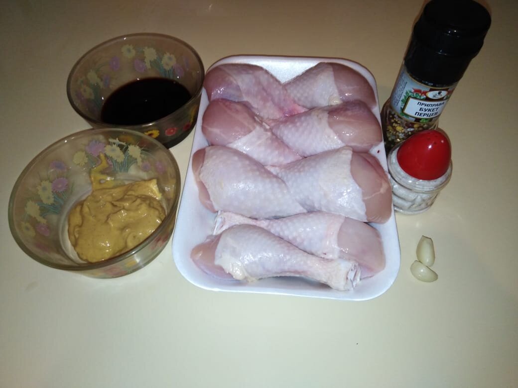 Привет всем подписчикам и гостям моего канала! Сегодня хочу поделиться новым, для меня, рецептом. Курица в горчично-соевом соусе. Список продуктов: Голени освобождаем от шкурки. В отдельной чаше смешиваем: соевый соус, горчицу, соль и перец. Получившийся маринад заливаем в курицу и отправляем в холодильник на 2 часа. Далее выкладываем курицу на противень и заливаем соусом. Накрываем противень фольгой и отправляем в разогретую духовку на 40 минут при температуре 200 градусов. Мягкая, сочная курочка готова) Приятного аппетита! Всем спасибо за просмотр, надеюсь эта статья была полезной. Если понравилось, ставьте палец вверх, подписывайтесь на канал. Здесь вы найдете интересные кулинарные решения, полезные советы, обзоры на известные сериалы и даже статью про заброшенный город)