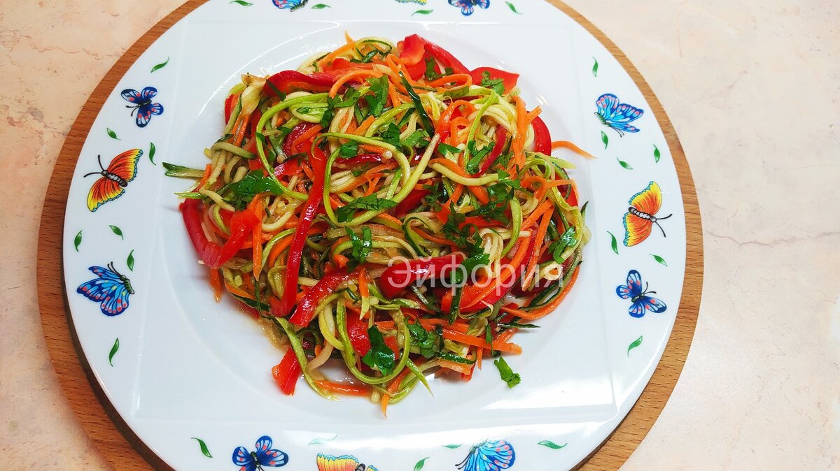 Мы ее называем "Дачная закуска" Так как летом частенько собираемся с друзьями на даче, и она у нас всегда присутствует на столе. Вкусная, свежая, хрустящая в меру остренькая закусочка. К шашлыкам, к рыбе на мангале - просто идеальна. Готовится очень просто - исчезает со стола быстро.