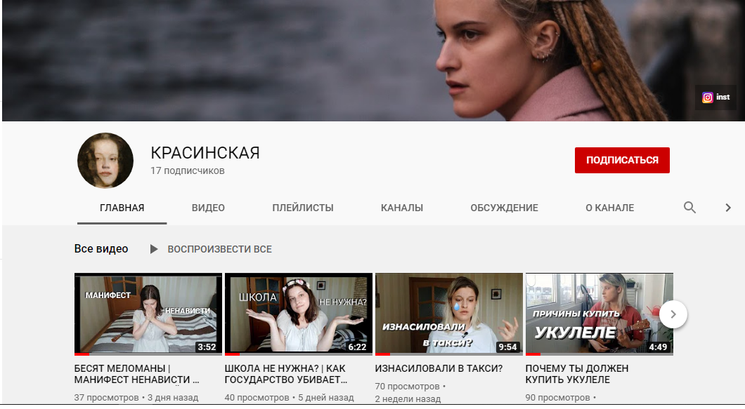 коротко о канале Красинская Молодая девушка очень приятной внешности, рассказывает интересные факты из своей жизни, а также высказывает свое интересное мнение по поводу общественных проблем