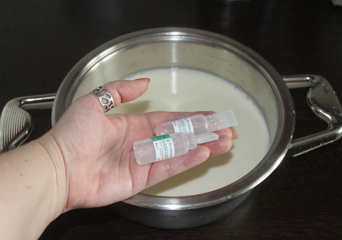 Свою старшую дочь я родила на заре 90-х годов. В те времена с молочными продуктами было не просто, а с молочными кухнями сложно. Мы жили на севере, получать продукцию молочной кухни ездили раз в неделю. На неделю ребенку давали 2 баночки творога. Творожок этот дочке нравился. Выдавали тогда кальцинированный творог. Я очень просила нашего педиатра выписывать больше творога. Но она не могла – норма. К слову сказать, педиатр у нас была замечательная. Она меня, совсем молоденькую мамашу, научила делать такой творожок своими руками. С тех пор всегда делала творог детям сама. А сейчас укрепляю свои косточки этим замечательным продуктом. Приготовление творога, обогащенного кальцием, не требует много времени. С рецептом справится даже ребенок. И набор продуктов для его приготовления очень простой. Нам понадобиться 1 литр молока и 20 мл. хлористого кальция. Хлористый кальций продается в любой аптеке и стоит не дорого. Я покупаю его в ампулах для инъекций. Каждая ампула по 10мл. Для пригото