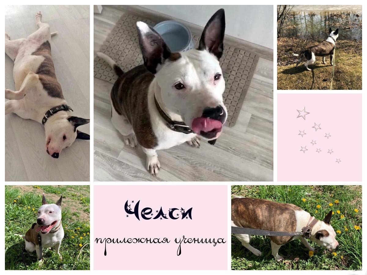 Челси около 2 лет, это нескончаемый поток энергии и жизнелюбия. Малышка очень человекоориентированная. Челси близкий метис стаффорда, но весит не более 15 кг. Прекрасно подойдет в семью с детьми. Отношения к другим животным пока выясняются. Челси была найдена на улице в Екатеринбурге. К сожалению, поиск прежнего хозяина результатов не дал, скорее всего, ее просто выкинули. Сейчас малышка находится на передержке и ждет самого лучшего хозяина. Стерилизована, чипирована. Челси очень ориентированная на человека учится вести себя дома. Выдержка? Мммм, это сложно. Но Челси старается! Из отзывов посетителей в день открытых дверей: «Челси мегаактивная, позитивная собака!Я в восторге от встречи с ней! Порой у людей складывается мнение о том, что собаки данной породы агрессивные, враждебные и тд. Челси ломает все стереотипы с первого взгляда! Я польщена!!!» У Челси все глубже, чем она показывает. Она кажется весёлой и беззаботной, всегда улыбается, но там, внутри, там большая печаль и страх